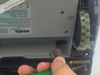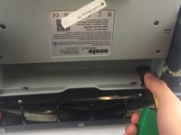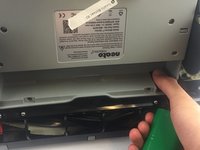 Once you have done this, flip the robot over. Loosen the 2 screws, and lift the flap off