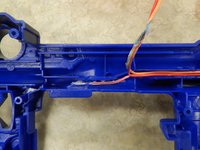 To remove the motor and trigger mechanism you have to detach these two wires which are glued to the shell.