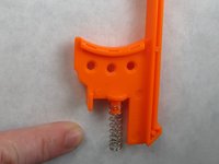 Carefully pull the orange trigger upward and backward to remove it from the blaster.
