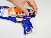 Remove the barrel and the front part of the blaster. The components should simply slide off.