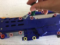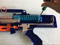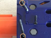 The orange nerf rail tooth and corresponding spring may fly out during the fix. If so, neatly set them aside, but make sure to reinstall during reassembly.