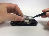 Grip the connector with the tweezers as shown and pull it away from the casing.