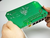 Separate the motherboard from the top shell by lifting it straight up from the router.