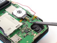 Gently flip over the circle pad. Be aware that the pad is pressed into the back of the circle pad on the front of the case. Gentle prying will be necessary to pry if from the back of the circle pad.