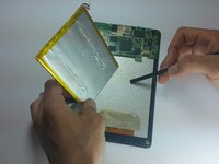 Using the flat end of a spudger, carefully work the spudger under the battery, lifting it off of the device.