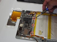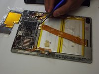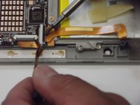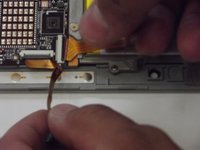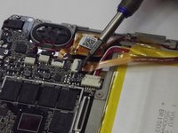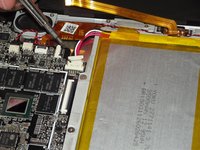 Remove the smaller ribbon clip on the right side of the device and the top right of the battery.