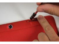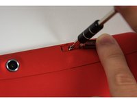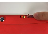 Using your finger, open the plastic tab to the right of the rear-facing camera.