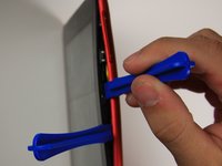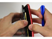Use the plastic opening tool to separate the back panel by carefully sliding the narrow end of the tool between the front glass and back panel.