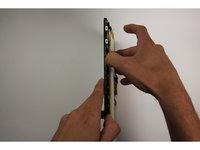 To separate the digitizer from the screen, tilt the device on its right side and use your other hand to pull the battery to the right.
