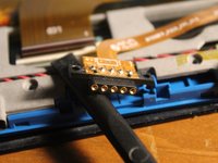 As shown, part of the ribbon cable may be glued down. Use a spudger tool and CAREFULLY lift up. Don't rush.