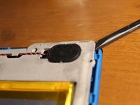 The right speaker can be pulled up however, it may rip the adhesive sticker. If this occurs, reapplying the bottom of the sticker to the new assembly and adding a drop of superglue will hold it back in place.