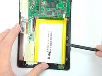 Pry the battery from the base using the nylon spudger and move it away from the motherboard.