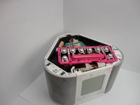 Unscrew the two screws with a Phillips #0 screwdriver on the top side of the device right in front of the eight buttons.