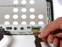 Detach LCD connector ribbon by pressing upward on connector latch using a plastic opening tool.