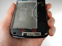 Remove the two 4.8 mm screws that hold the speaker enclosure together using the Phillips 00 screwdriver.