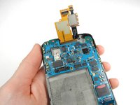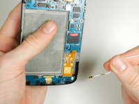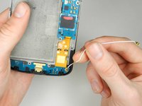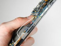 Remove the white antenna interconnect cable that attaches the motherboard to the bottom right-hand corner of phone by pulling on it gently.