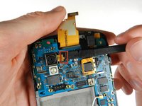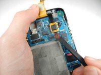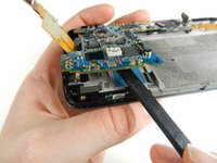 Gently pry the speaker up and away from the back of the phone using a plastic opening tool, and lift it out of the phone.