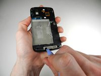 Gently open the back case by prying along the edge of the cover, starting at a corner of the phone and circling around the phone using a plastic opening tool.