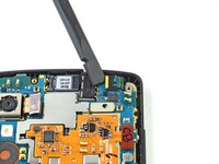 Use the flat end of a spudger to disconnect the ribbon cable that connects rear-facing camera to the motherboard.