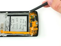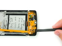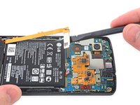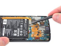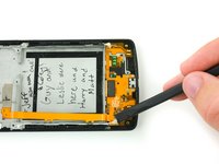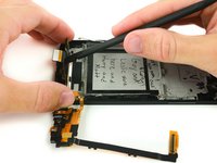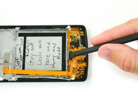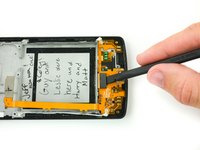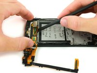 Use the flat end of a spudger to disconnect the daughterboard ribbon cable and pull it away from the battery.