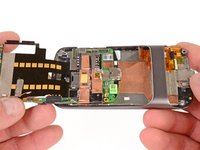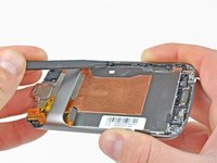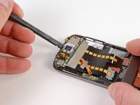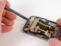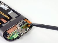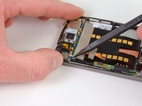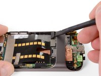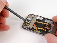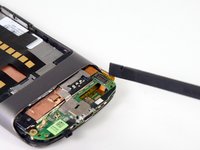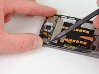 Using the plastic opening tools, pry the left bottom corner of the battery up.