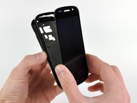 • Removing the display presented us with the first stumbling block in our disassembly. A heat gun made quick work of the front case assembly, though.