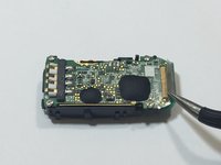 The display ribbon cable is soldered to the motherboard. We were able to peel up the ribbon cable with a pair of tweezers.