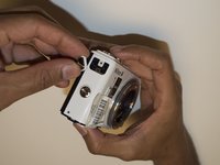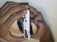 Using the Phillips PH00 screwdriver, remove the four 5.5mm screws in the red circles. Then use a plastic opening tool to pry off the tripod socket.