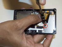 Lift the rainbow cable to have access to the 3.1mm screw beneath it and unscrew it with a Phillips PH00 screwdriver.