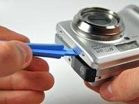 Using the plastic opening tool pry the back casing of the camera.