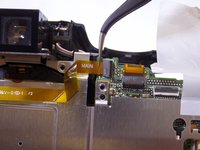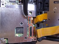 Pull the ribbon-wires towards the back-end of the camera.