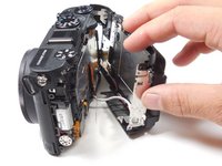 Remove the 4.3 mm black screw on top of the camera, right above where the screen folds out. Use the Phillips #00 screwdriver.