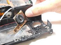 Remove the 4.3 mm black screw on top of the camera, right above where the screen folds out. Use the Phillips #00 screwdriver.