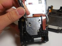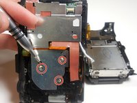 Remove the 4.3 mm black screw on top of the camera, right above where the screen folds out. Use the Phillips #00 screwdriver.