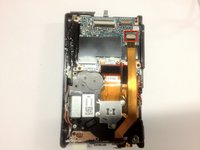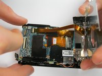 Pry up the plastic ribbon connectors on the body of the camera to release the ribbon cables.