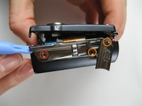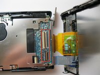 Pry up the plastic ribbon connectors on the body of the camera to release the ribbon cables.