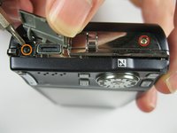 Remove the 3x2mm screw underneath the panel near the top of the camera.