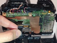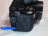 Unscrew the 4.0mm Phillips #000 screw located underneath the grey flap on the side of the camera with the "DC IN 5.0 V" marker.