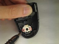 Unscrew the single 2.0mm Phillips #000 screw located on the dark brown strip on the back of the shutter button panel.