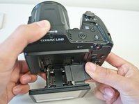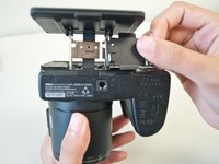 Unscrew the two black, 2mm Phillips #000 screws on the case of the hinge. (The hinge connects the screen to the body of the camera.)