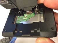 • Remove the two screws closest to the piece connecting the panel to the camera with a Phillips #1 screwdriver.