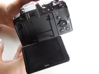 Extend the LCD screen out and turn the camera upside down to get access to the screws on the bottom.