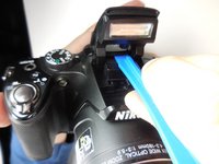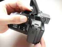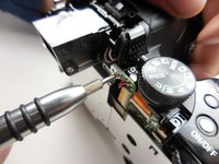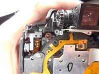 With the camera upside down, remove the three 3mm PH00 Philips screws on the left side.