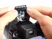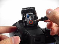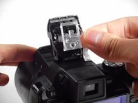 Place the plastic opening tool along the crack on the side of the flash compartment cover and pry open and detach the cover.