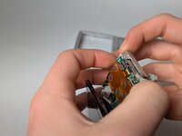 Gently lift the orange circuit board, maintaining all the connected ribbons.
