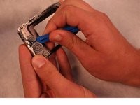 With your other hand, take the pry tool and start working your way around the edge of the buttons