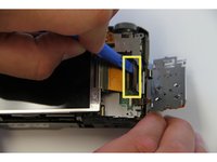 Once the brown latch on the ZIF connecter is lifted upward, carefully lift the screen and pull away from the camera.