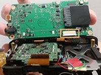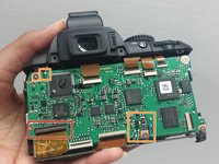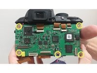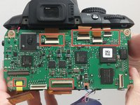 The motherboard is located behind the LCD and rear panel of the camera. It is relatively accessible but does require the use of a soldering iron to completely disconnect it from the rest of the camera.