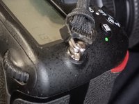Keeping the side which has the 2 ends of the split ring either to the front or back, and the flat side away from the camera one of the other side, slide the black retainer clip onto the split ring, with the solid side away from the camera while the clip is the way a strap would hold it.