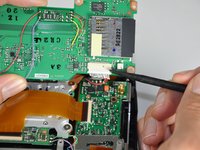 Disconnect the ribbon cable by flipping the black tab up, then pulling the cable out.